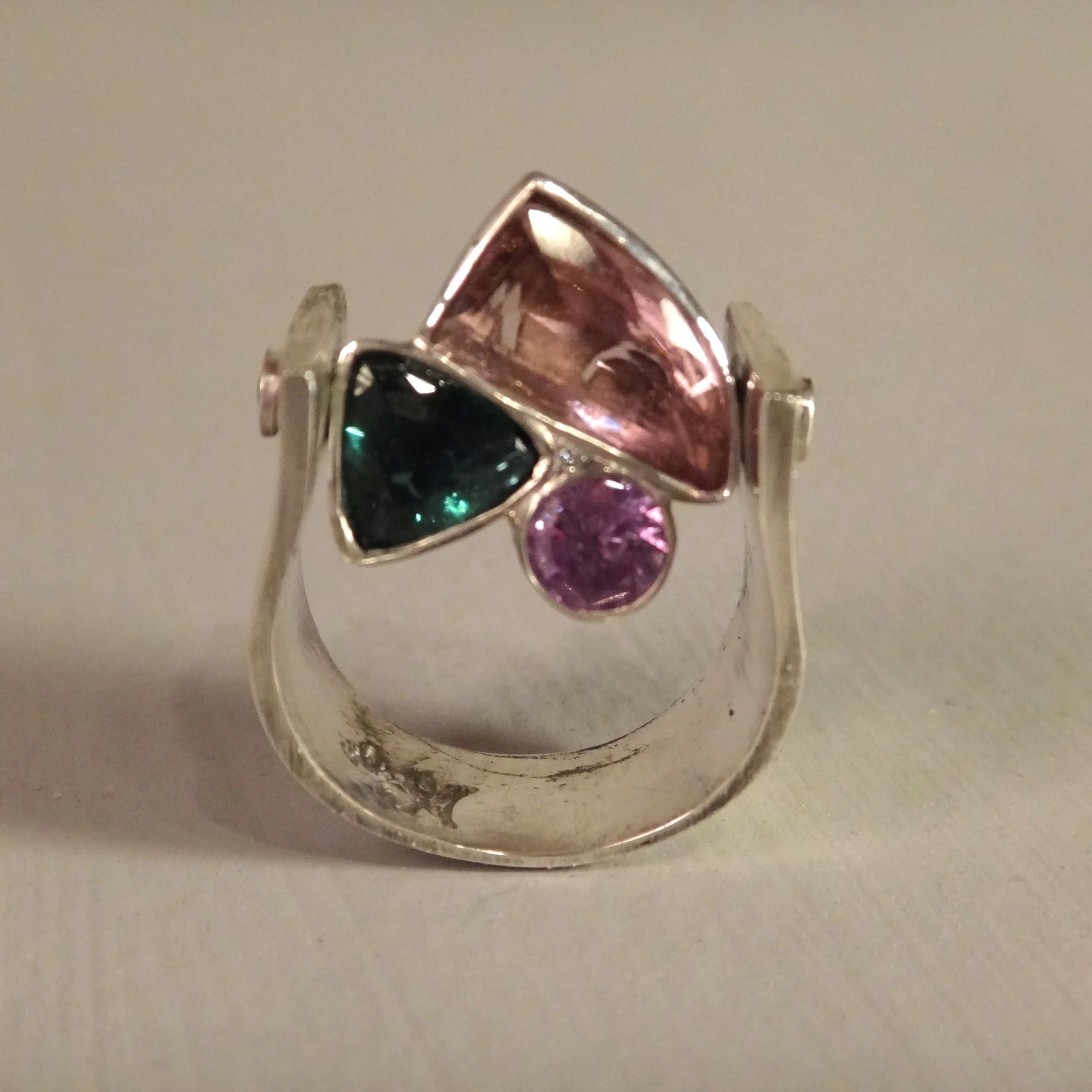 Cast Sterling Silver, London Blue Topaz, Green/ Pink Tourmaline, Diamonds